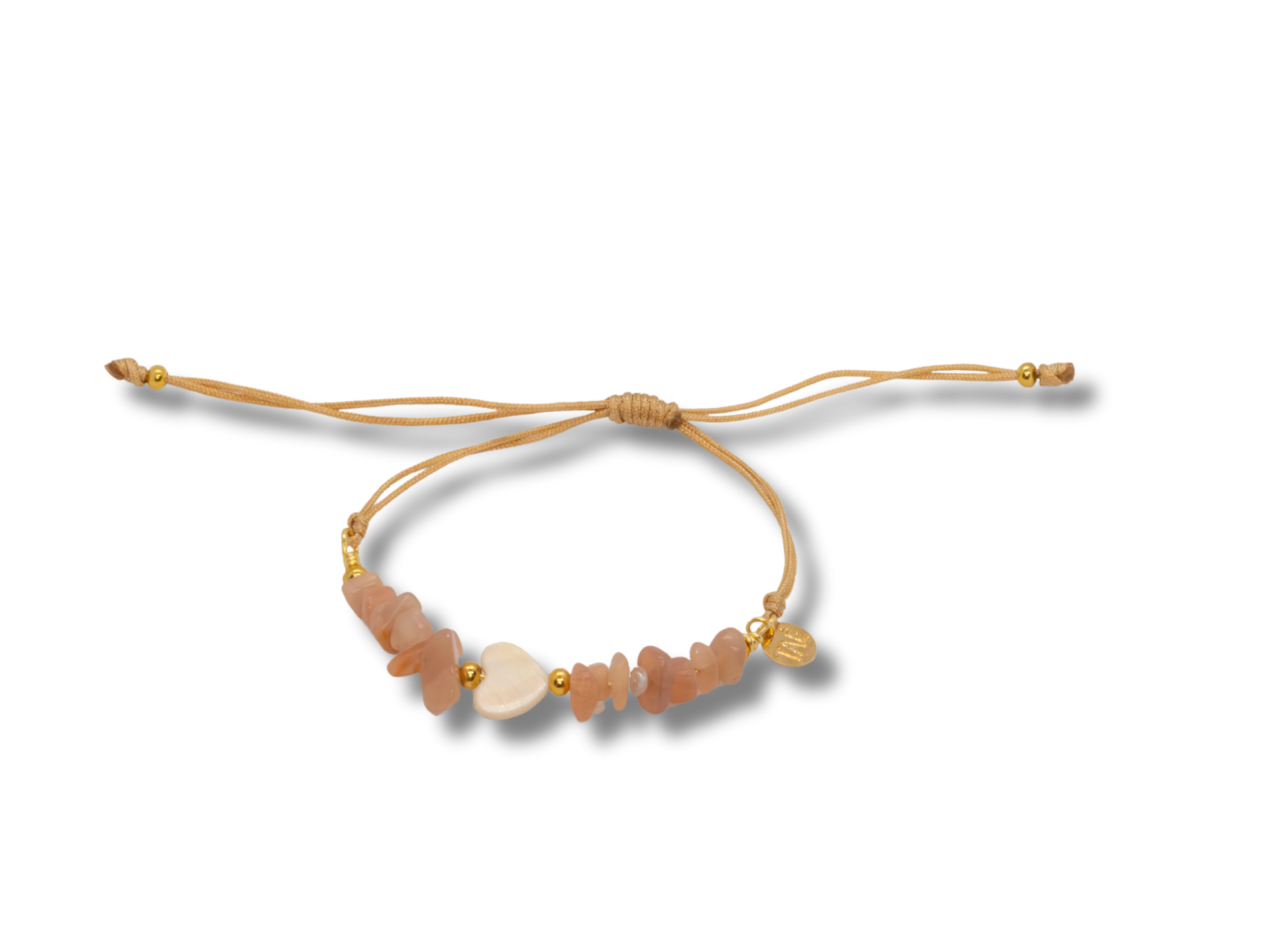 Stand out with our tangerine quartz and mother of pearl adjustable macrame bracelet. Featuring a heart-shaped design, this piece of jewelry will ignite your passion for living and spark your adventurous spirit. Let your life be filled with possibilities!